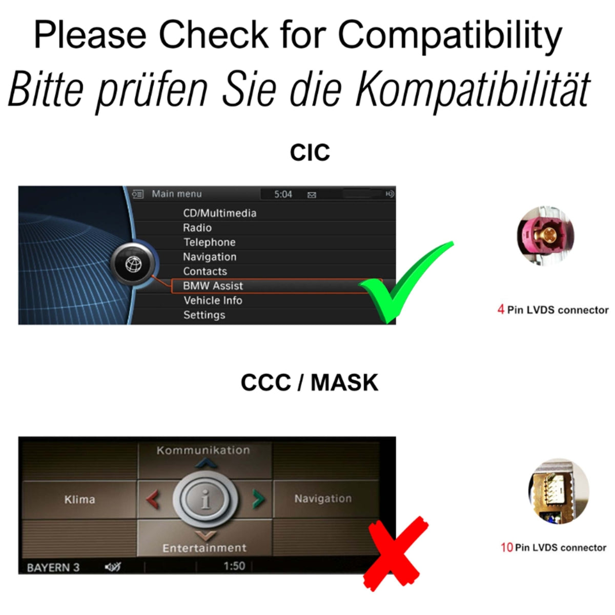 Unterstützt Original Radio Funktionen, i-Drive, Lenkradsteuerung, alle Fahrzeuganzeigen und Einstellungen etc.
