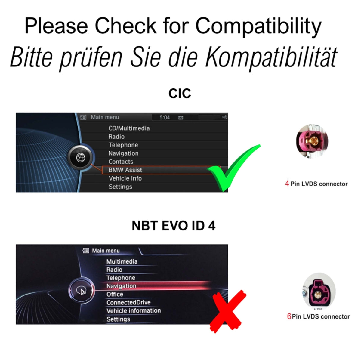 Unterstützt Original Radio Funktionen, i-Drive, Lenkradsteuerung, alle Fahrzeuganzeigen und Einstellungen etc.